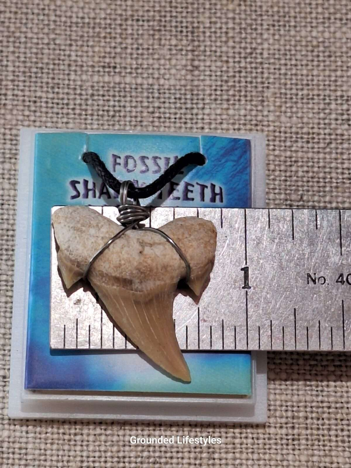 This 1.25-inch fossil shark tooth necklace captures the raw energy of the ancient seas. Each authentic tooth is individually wire wrapped by hand, securing the fossil while preserving its natural enamel sheen and serrated texture. The piece hangs from a durable black rope cord, giving it an earthy, organic look that complements the fossil’s subtle beige and gray hues. The necklace arrives in a transparent display box, perfect for gifting or safekeeping.
