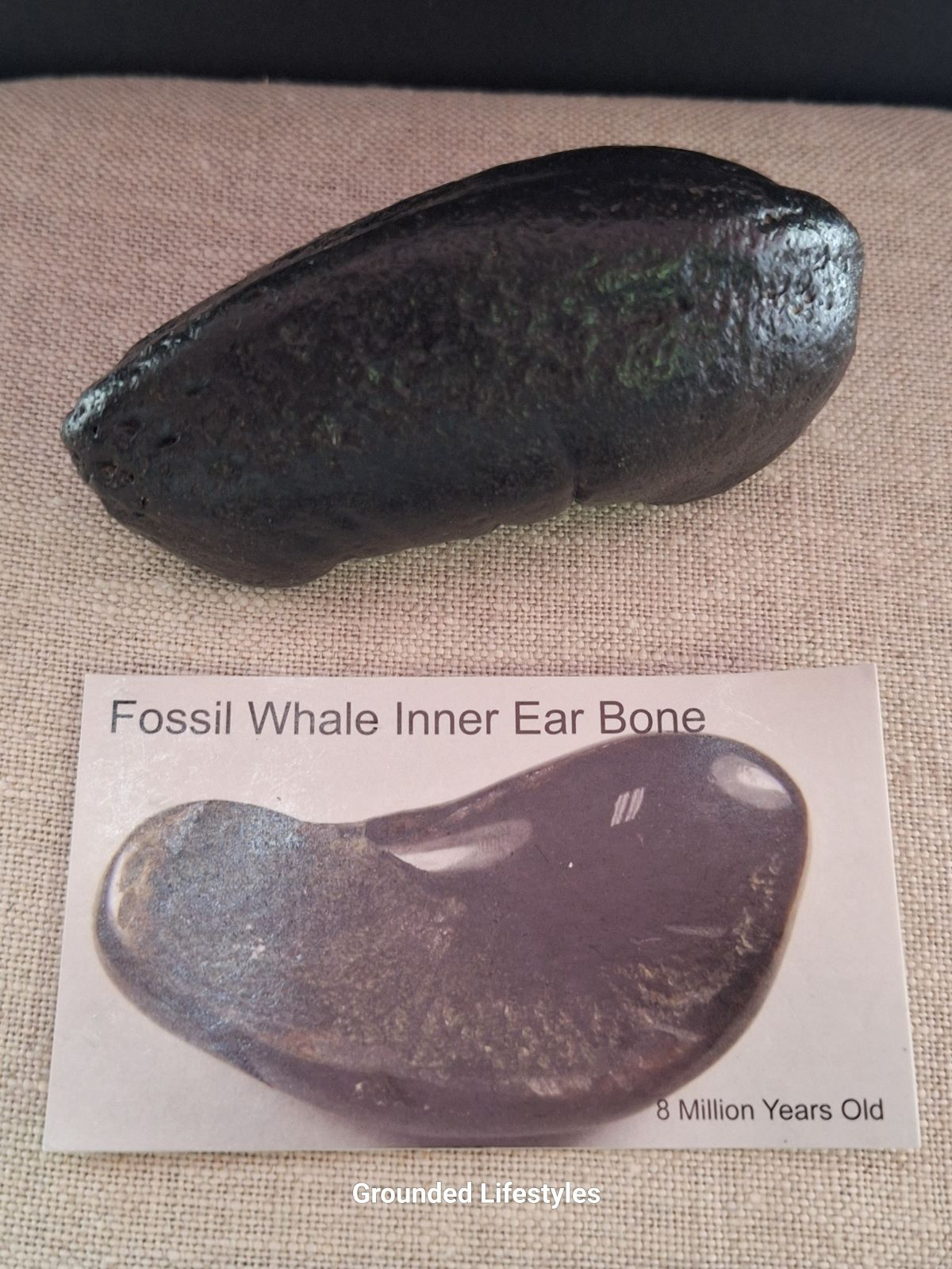 As the whale died and its body settled onto the sea floor, the periotic bone—among the heaviest and most compact in the skeleton—survived and eventually became mineralised within marine sediments. This gives the fossil both scientific importance and distinctive tactile weight.
