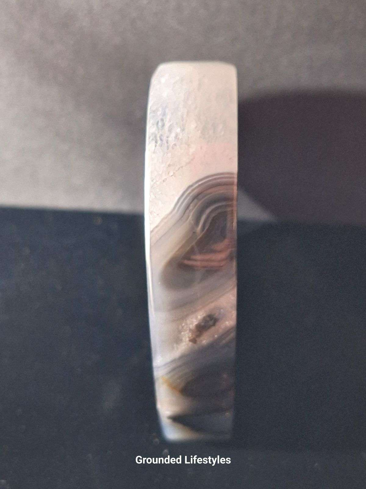 Agate is a microcrystalline variety of quartz known for its rhythmic banding and exceptional durability. It forms within volcanic cavities when silica-rich solutions deposit layer after layer of chalcedony. Trace iron and manganese create its subtle color variations. High-grade specimens like these are sourced from Brazil and Madagascar, where lava flows produced ideal conditions for agate growth.