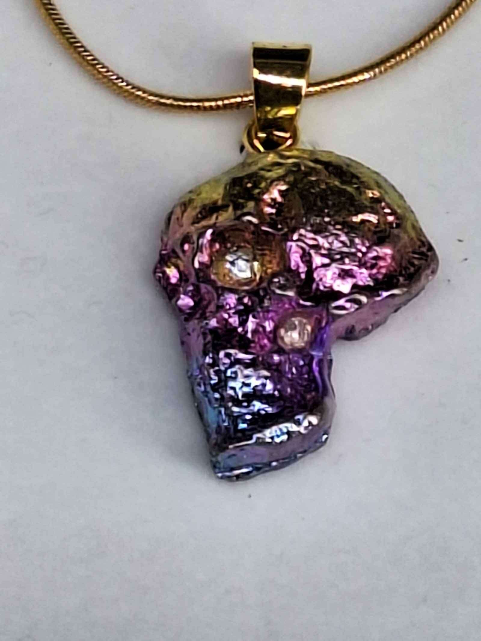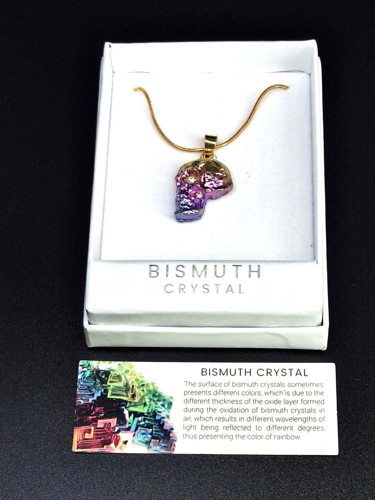 Looking for a standout gift? Our Bismuth Skull Pendant Gift Set is the perfect choice. Comes with an explanation card and a stylish gold plated chain.
