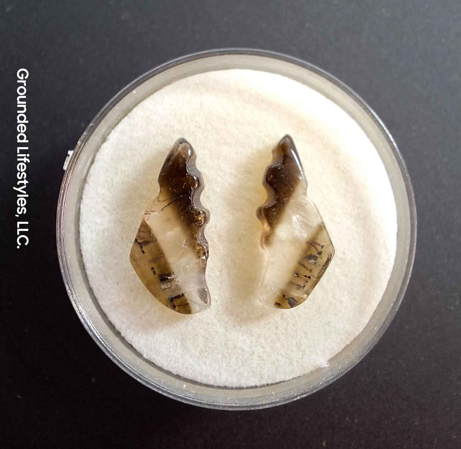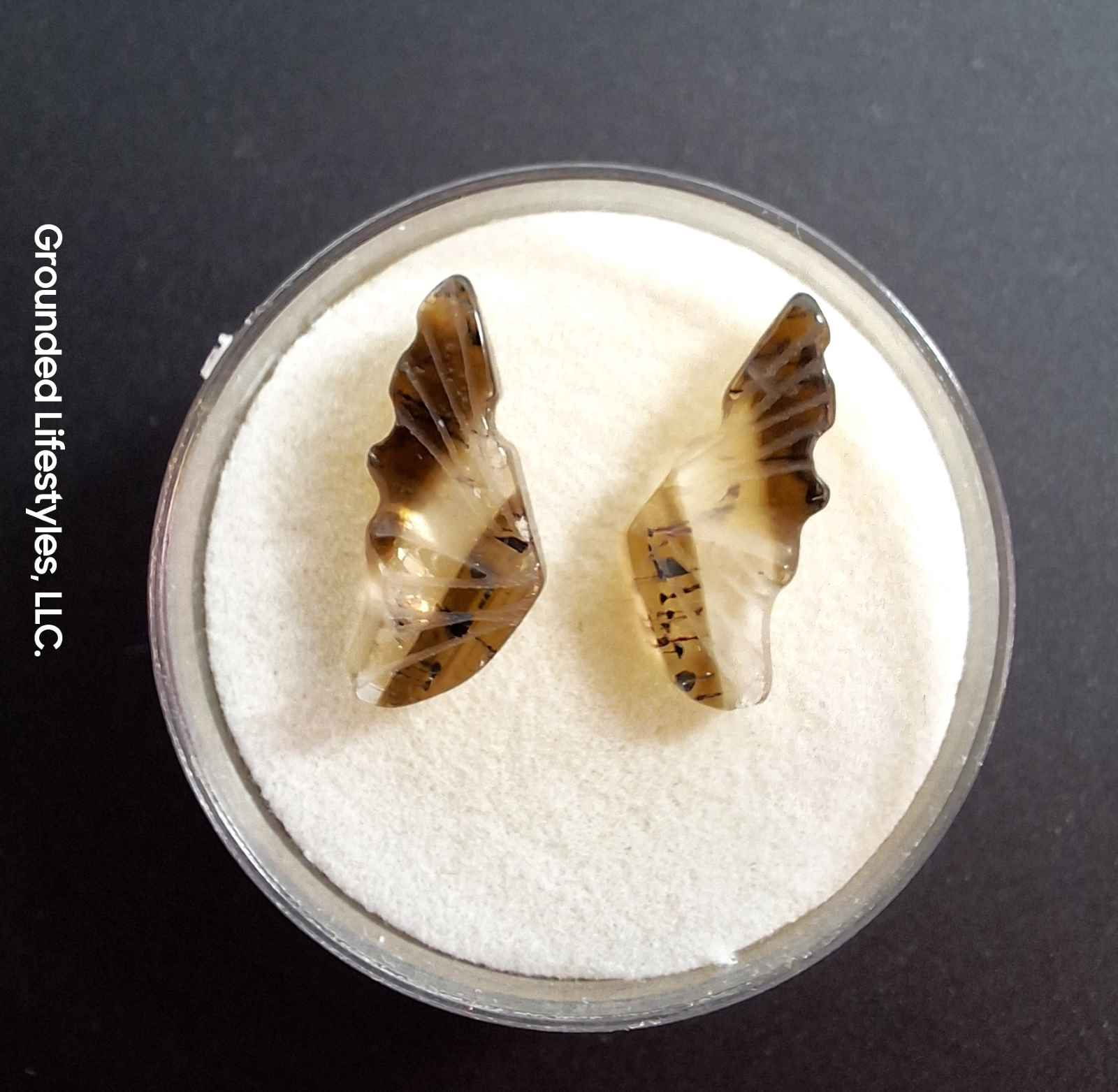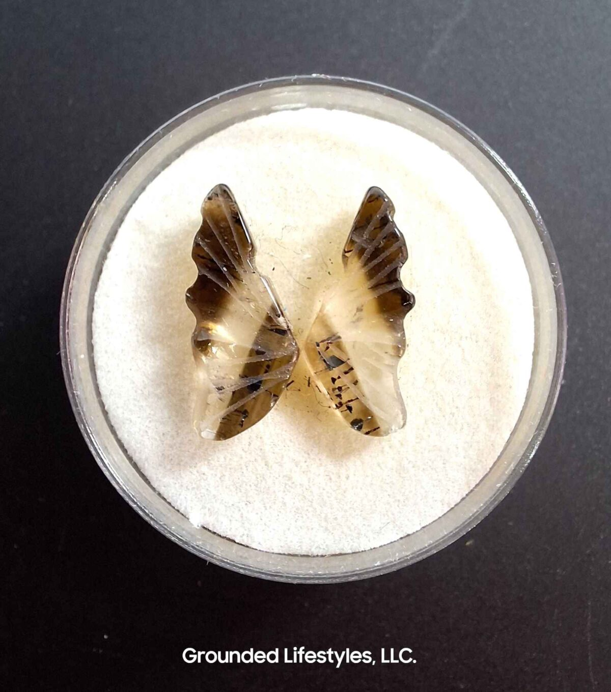 To achieve the butterfly wing shape, skilled artisans carefully cut and polish the natural quartz and tourmaline slices by hand. Using precision lapidary tools, each curve is shaped to mirror the elegance of a butterfly’s form. The process involves step-by-step grinding, smoothing, and fine polishing to reveal the interplay of light through the quartz and highlight the dark tourmaline inclusions. Because of this meticulous carving, no two sets are ever identical—each piece is a one-of-a-kind work of natural art enhanced by human craftsmanship.