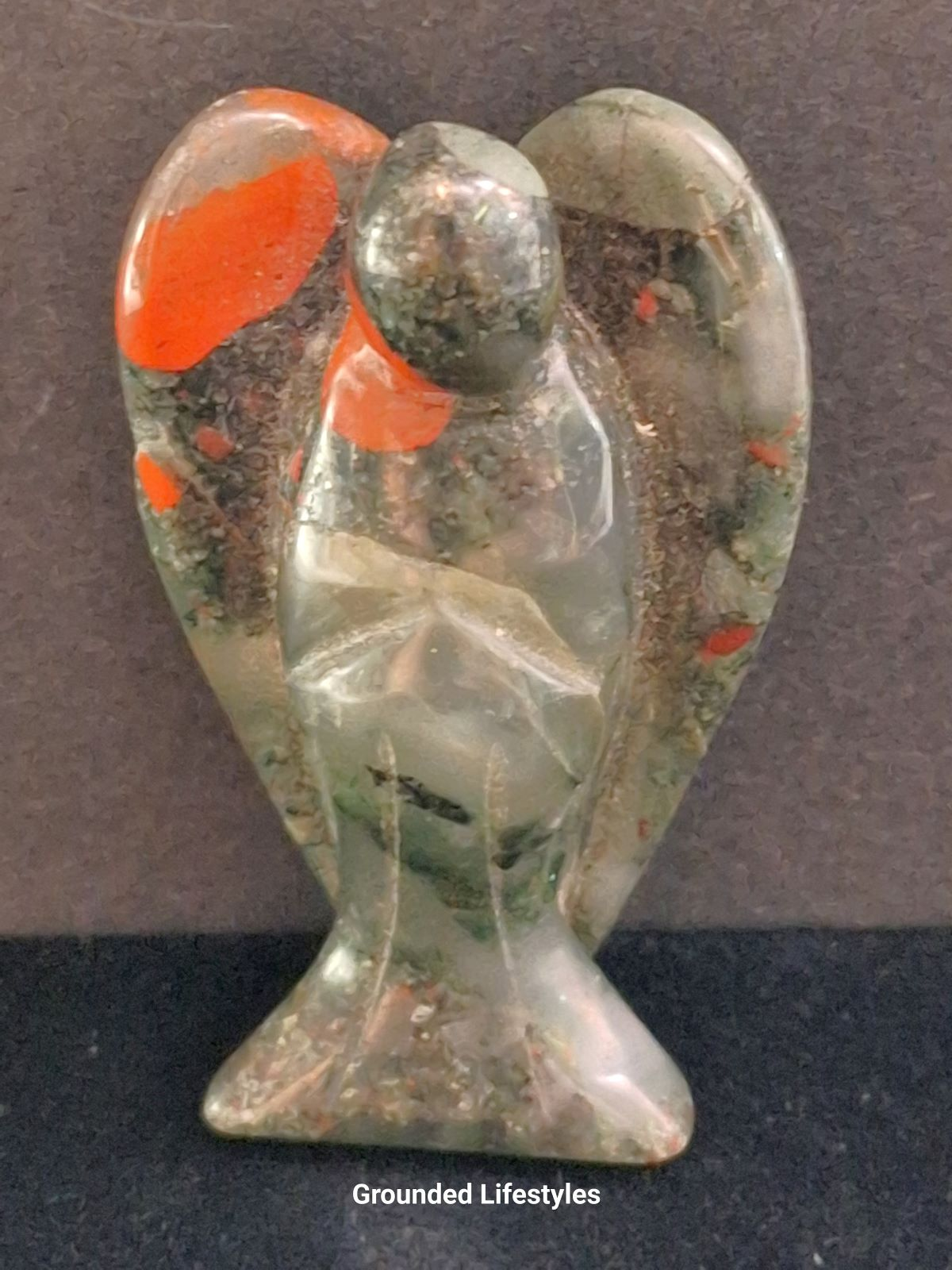 The angel symbolizes courage, vitality, and steadfast guidance, while bloodstone represents endurance, renewal, and strength. Together, they form a timeless emblem of resilience: