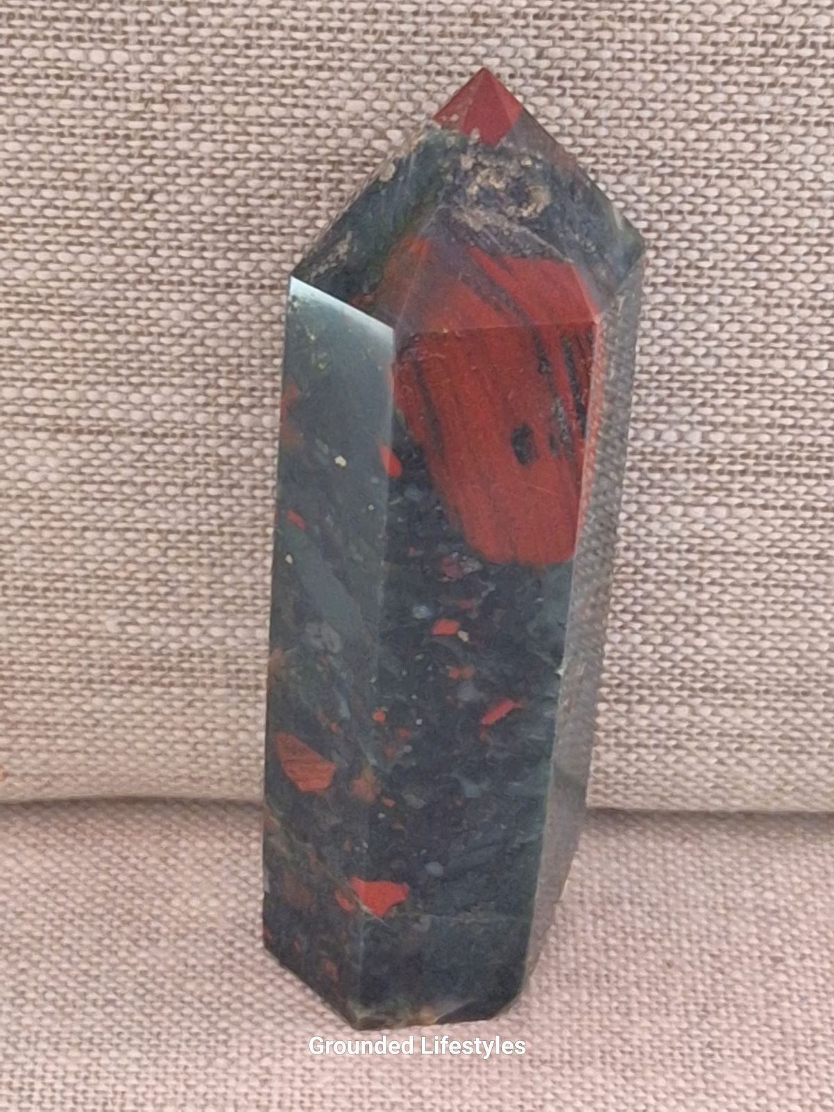 At 3.25 inches, this point offers an ideal balance of size and detail, showcasing rich green coloration and red accents across multiple polished faces. Bloodstone’s combination of depth, durability, and patterning makes this point a compelling choice for collectors of classic gemstone materials.