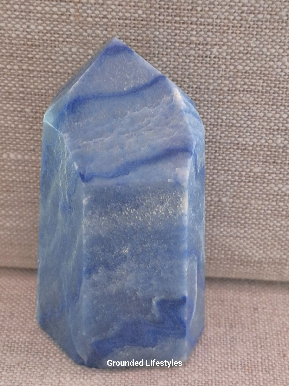 At 3.25 inches, this point is large enough to showcase its soothing blue tones while remaining easy to place on shelves, desks, and intentional décor spaces. The polished facets reveal gentle internal textures, and the clean termination provides a refined, balanced look.