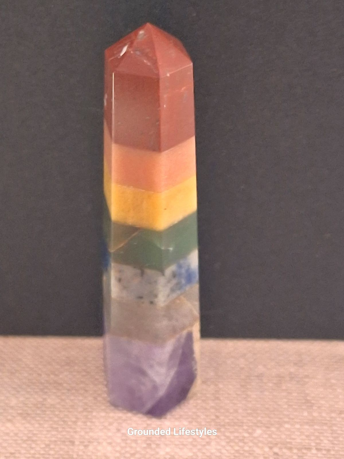At 3 inches, this bonded chakra point is compact yet visually bold. The layered colors create a strong vertical gradient, and the polished facets give the piece a clean, reflective finish. Its balanced height makes it ideal for desks, spiritual altars, meditation areas, window sills, or color-themed décor.