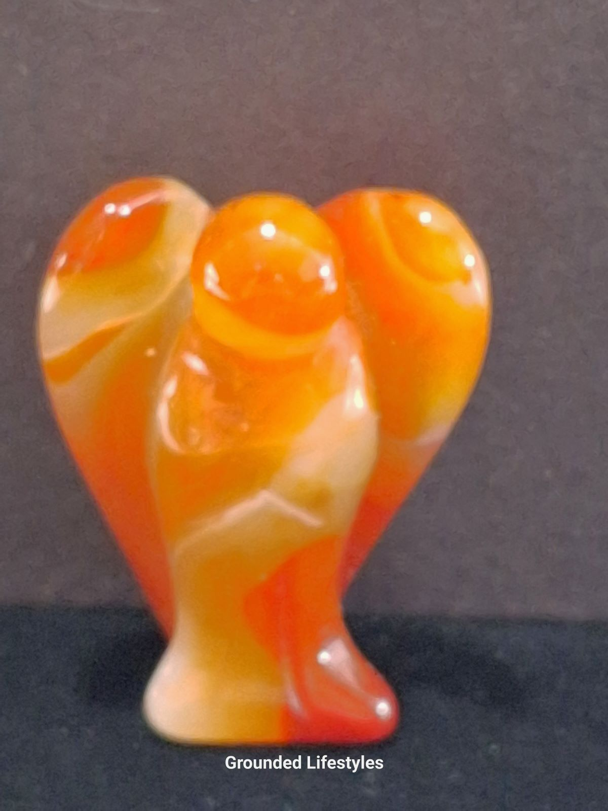 The angel symbolizes protection, guidance, and higher awareness. When sculpted from carnelian, this meaning expands to represent courage in action and emotional balance: