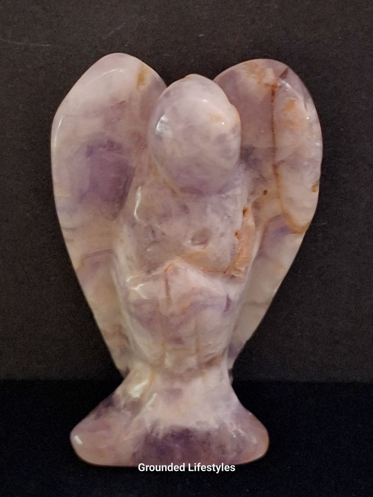 The angel represents guidance, clarity, and higher awareness. When shaped from chevron amethyst, it embodies harmony between intuition and logic: