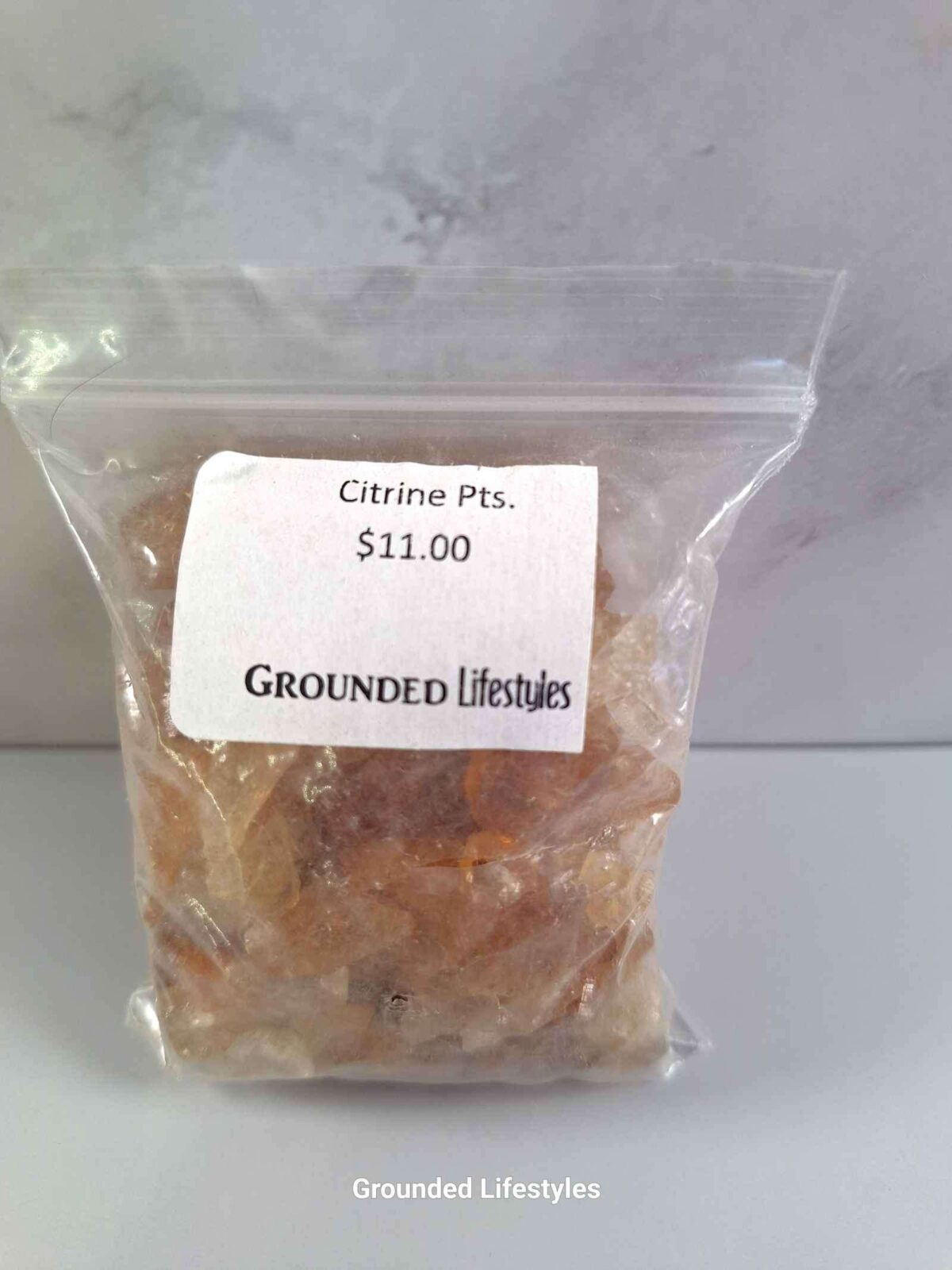 Each Citrine Points Pack includes quartz points hand-selected for color and clarity. Their bright yellow to amber tones come from trace iron impurities within the crystal lattice. The points are lightly polished to preserve their natural prism shape and radiant transparency.
