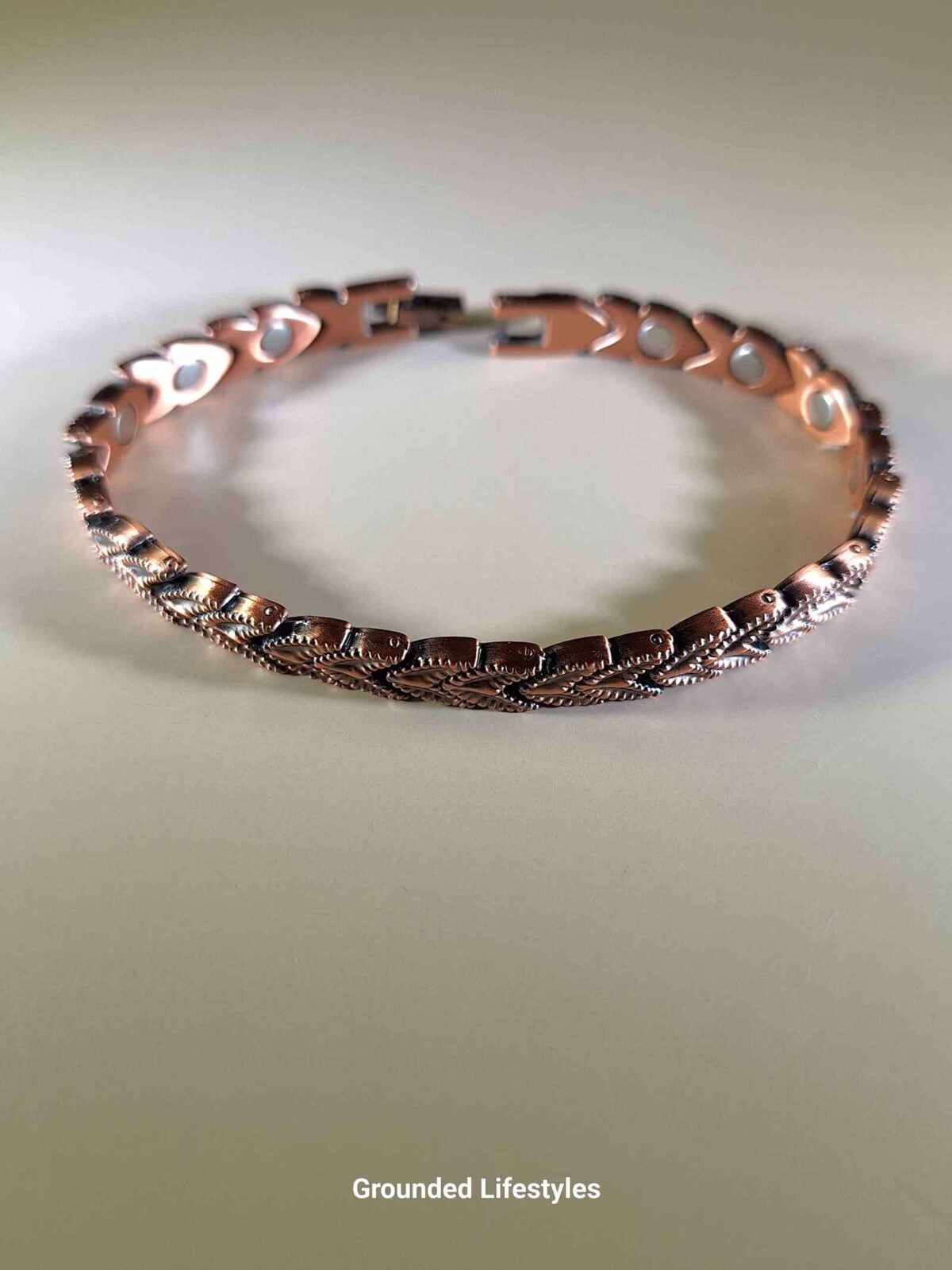 Featuring a classic herringbone pattern, this bracelet offers a contemporary yet timeless aesthetic. The smooth, interlinked pattern catches the light beautifully, creating a sophisticated look that complements both casual and formal attire. Its warm copper tone adds a subtle, elegant shine to your wrist.