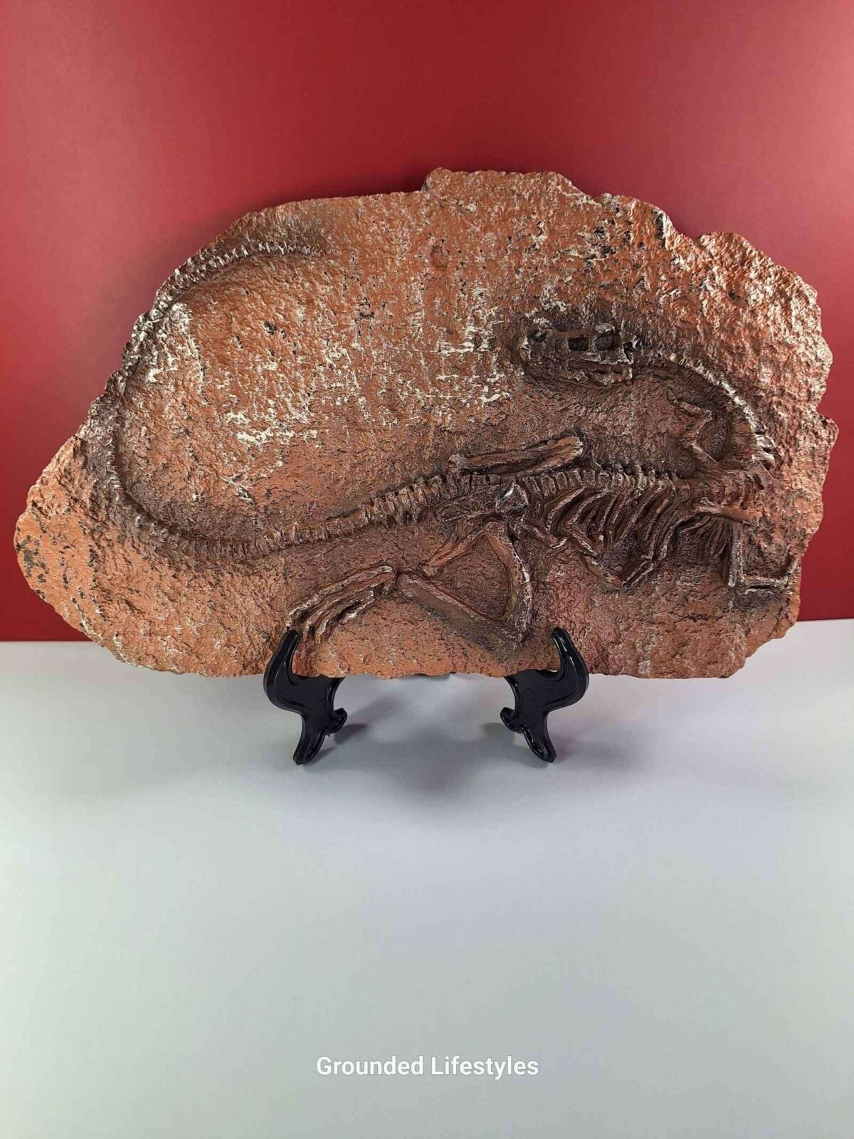 The plaque is created using the mold-and-cast method, where molds are taken directly from genuine fossils or scientifically accurate models. These molds are filled with durable resin or composite material, ensuring fine skeletal details are preserved while making the piece lightweight and easy to handle. Replica casts allow paleontology enthusiasts to study accurate forms without endangering fragile originals.