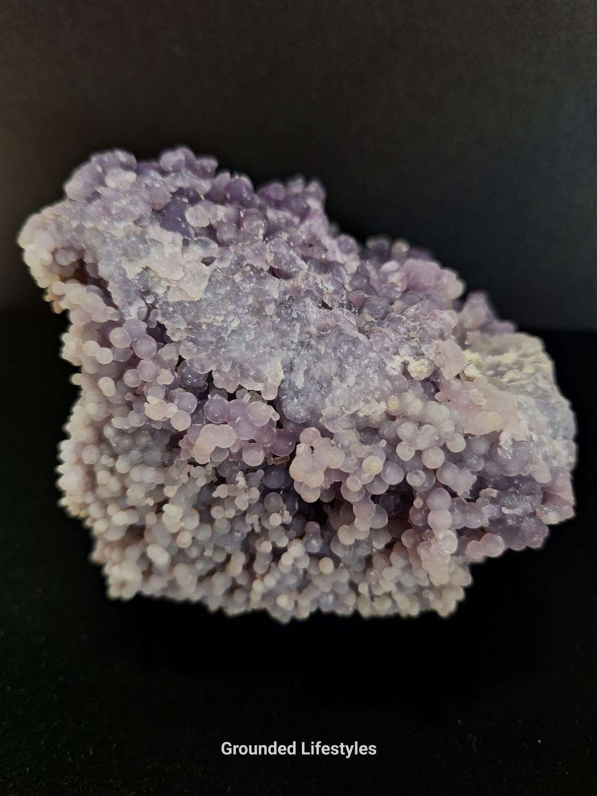 Grape agate is believed to promote inner stability, calm, and spiritual growth. Its rounded, clustered shape symbolizes unity and collective harmony, making it a favorite for meditation or energy work.
