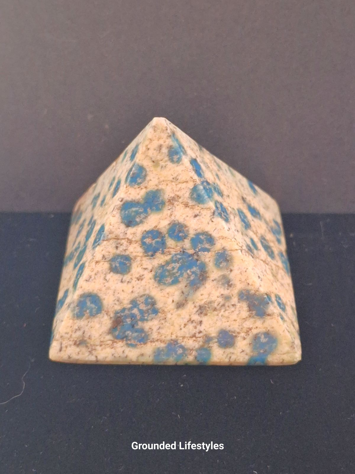 The pyramid shape has long been used in stone carving to emphasize symmetry and natural pattern flow. In K2 stone, the shape highlights the way azurite dots intersect the granite matrix, making each piece visually distinct.