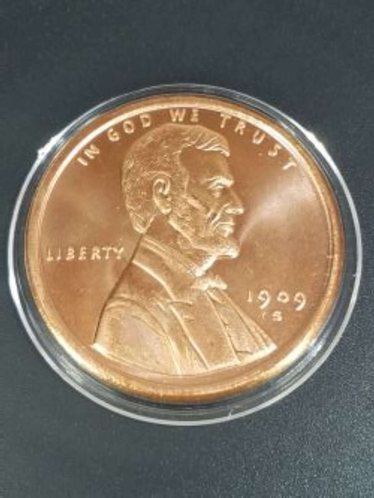 This 1-ounce copper replica faithfully mimics the Lincoln Wheat Penny design on a larger canvas, preserving classic details while offering a bold, polished presentation. Its heft and craftsmanship make it an iconic piece for creative and decorative use.
