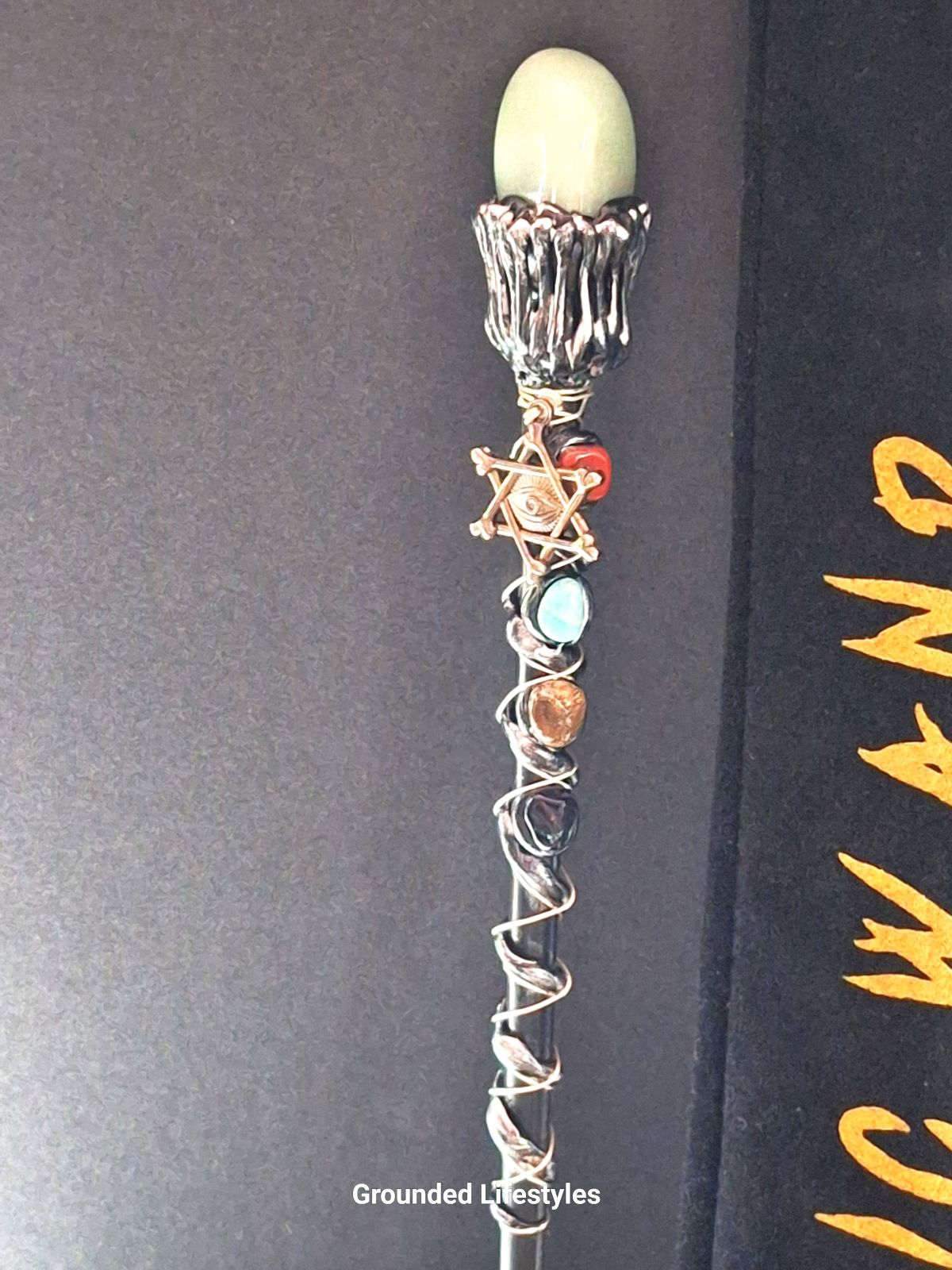 Green Aventurine is known as the Stone of Opportunity, believed to attract luck, prosperity, and renewal. It resonates with the Heart Chakra, fostering optimism, confidence, and emotional healing. When used in wand form, it helps channel intention with clarity and grounded focus.
