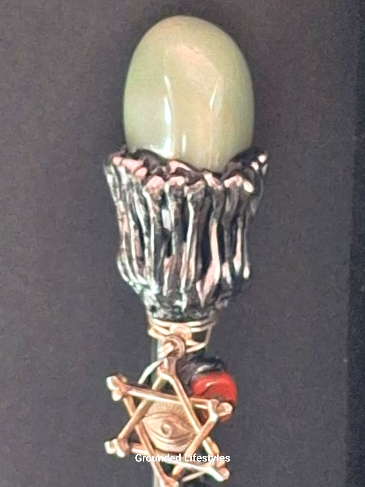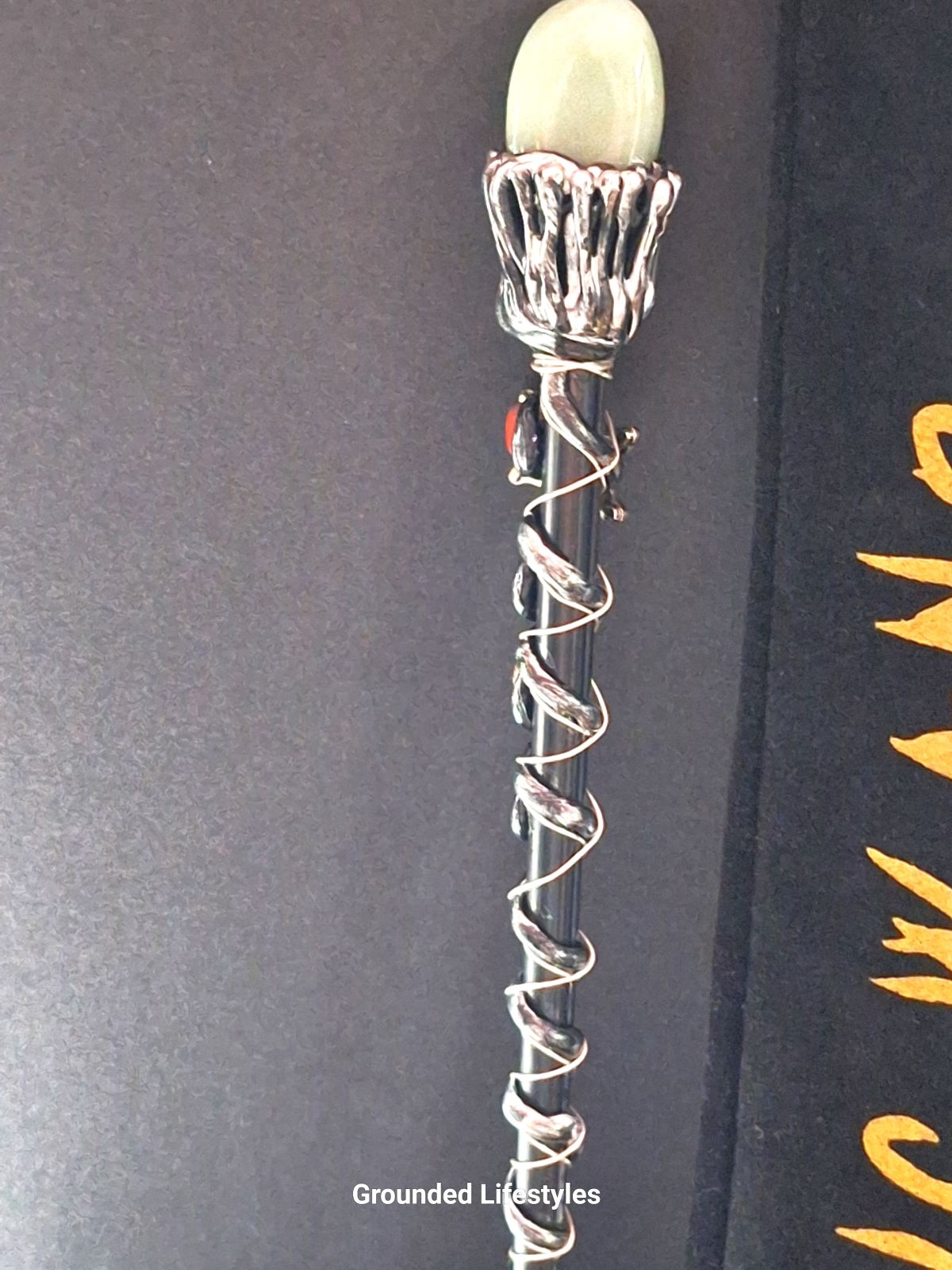 The combination of green aventurine’s natural shimmer and resin’s modern clarity makes this wand visually striking. Each piece is unique — the aventurine sphere’s shade may vary from soft mint to deep forest green, offering natural variation. The included black velvet “Magic Wand” bag enhances presentation and protection, appealing to both collectors and spiritual practitioners.