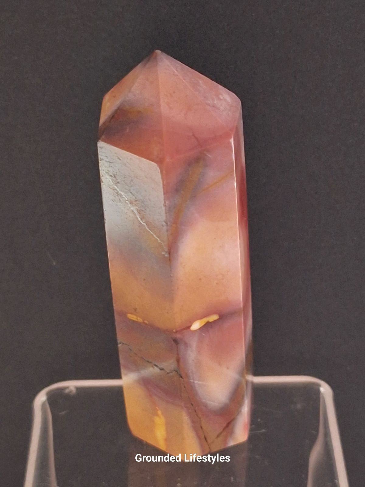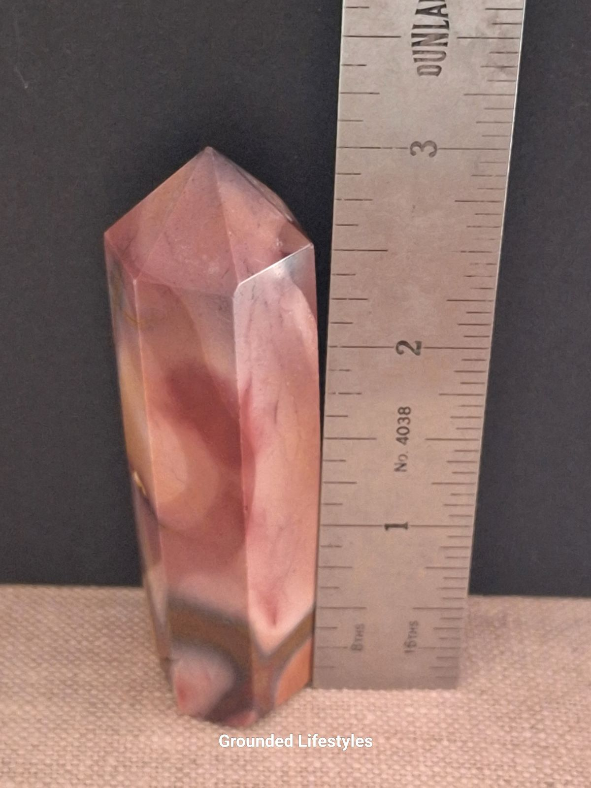 At 3 inches, this point offers a compact yet impactful way to display Mookaite’s natural color diversity. Every face presents a different arrangement of reds, golds, creams, or mauves. The polished termination adds refined symmetry, making it ideal for curated shelves, office décor, or grounding-themed arrangements.