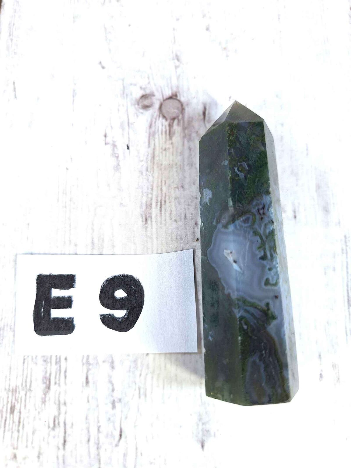 This Moss Agate Point is a polished specimen showcasing translucent chalcedony with distinctive green moss-like inclusions. Its smooth, tapered point enhances its aesthetic appeal, making it a standout piece for collectors, décor, and mindful spaces.