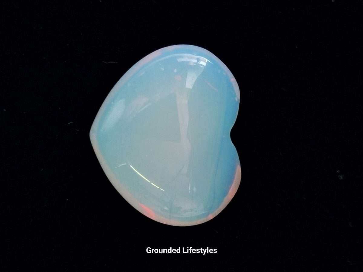 Each Opalite heart is carved with precision and polished through multiple stages to bring forward its internal sheen. The piece reflects light softly, producing a pearly effect across the surface. Edges are gently rounded for comfort, and the polish is fine enough to feel silky to the touch.