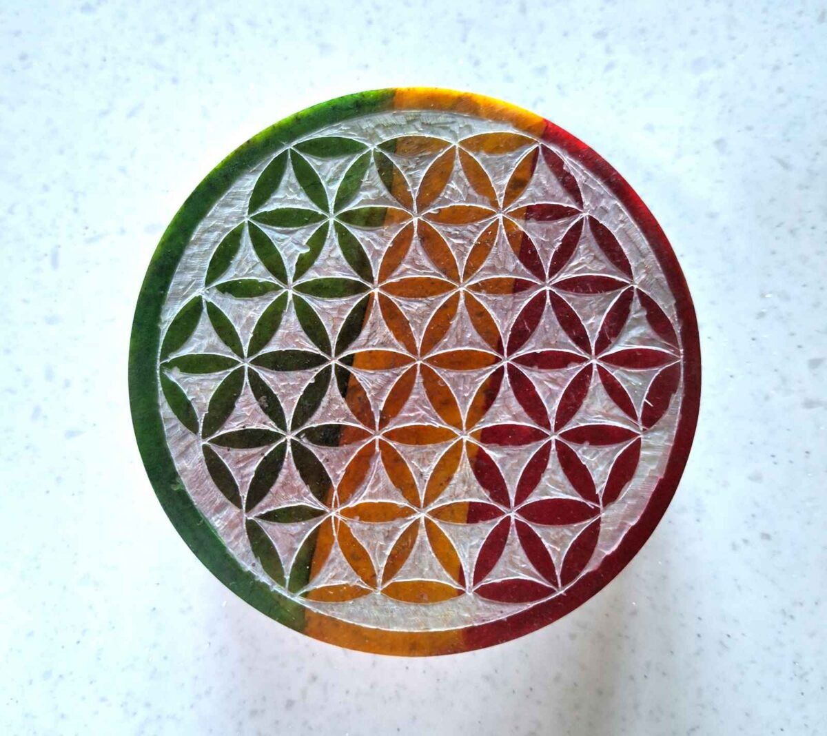 Soapstone itself is often viewed as a stone of balance and tranquility, grounding excess energies while fostering a gentle environment of calmness. Paired with the Flower of Life symbol, this piece becomes not only functional but also energetically significant.