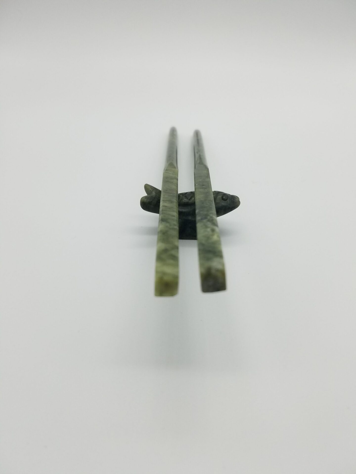 These chopsticks are carved from solid nephrite jade, selected for durability, smooth feel, and rich color. Each piece is hand-polished to a silky finish, revealing subtle natural veining. We use only high-grade material (no resin or veneer) to ensure authenticity.
