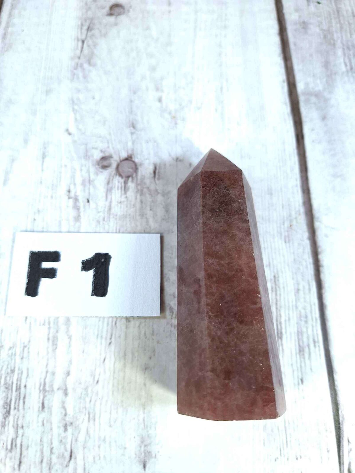 This Strawberry Quartz Point is a polished specimen showcasing delicate pink hues interspersed with red inclusions. Its smooth surface and natural formation make it an attractive addition to any collection or décor.