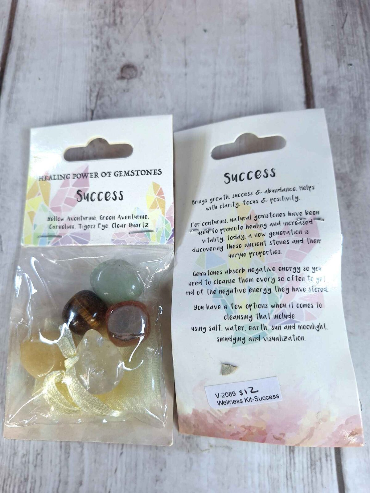Each Success Healing Stone Set includes five polished gemstones hand-selected for their uplifting and empowering energy. The stones are carefully tumbled to reveal their natural color and luster, perfect for pocket carry, meditation, or workspace inspiration.