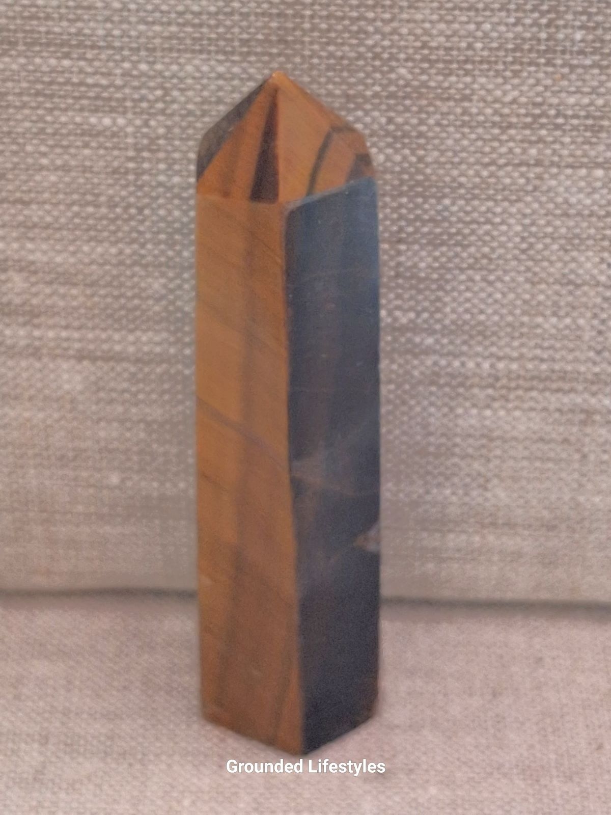 At 3.50 inches, this point is tall enough to showcase the full range of tiger eye’s golden movement. The polished facets catch shifting bands of light, making it an engaging display piece for shelves, desks, or intentional décor. Its warm palette pairs beautifully with browns, neutrals, and metallic accents.