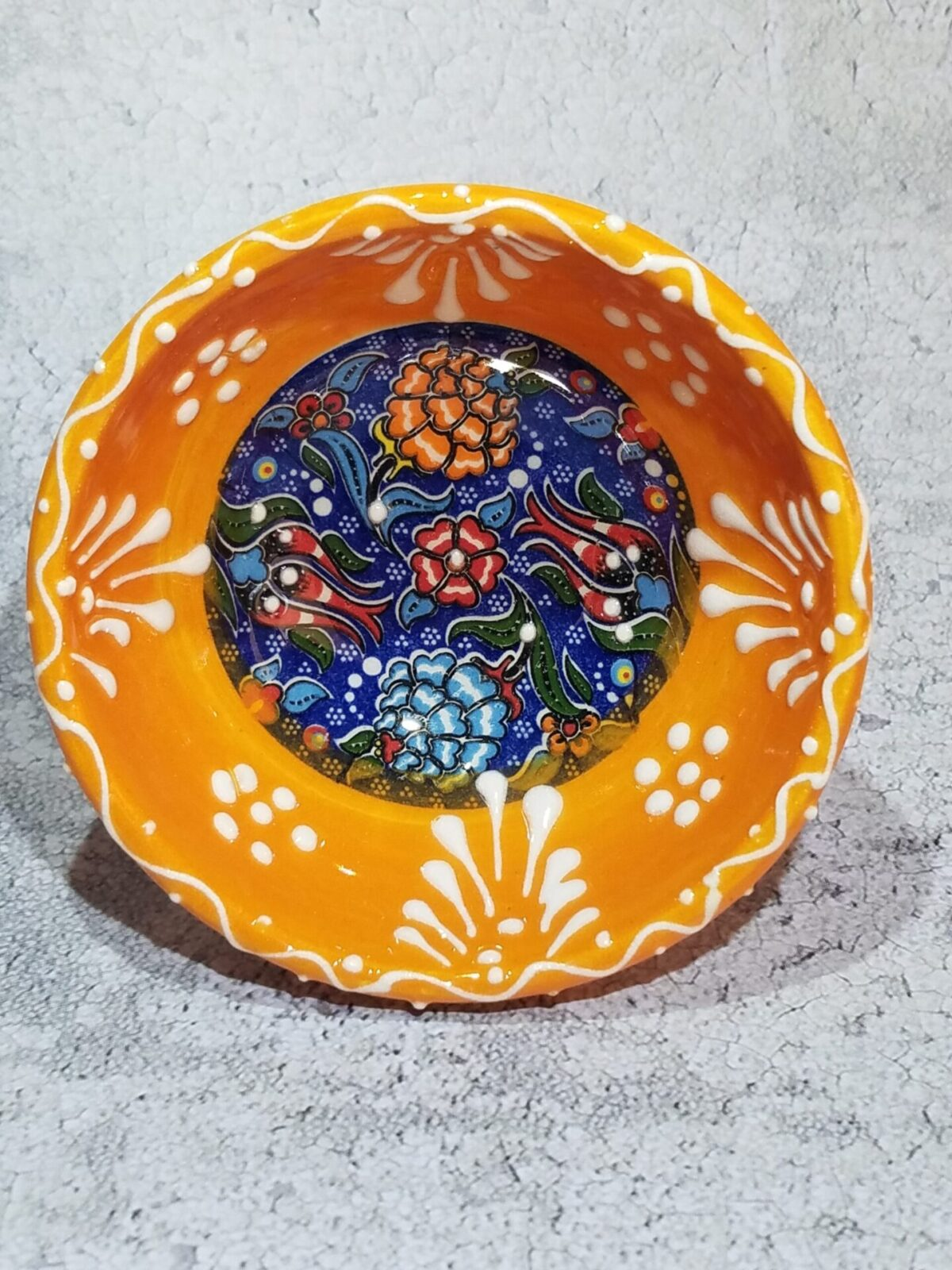 Elevate your dining experience with our Hand-Painted Turkish 3 inch Ceramic Bowl. Crafted by skilled artisans, this vibrant, food-safe bowl is perfect for serving appetizers, snacks, or as a decorative accent in your home.